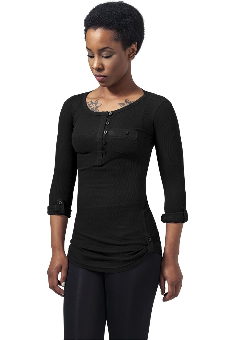 Топ с длинным рукавом Ladies Long Rib Pocket Turnup Tee Urban Classics, черный