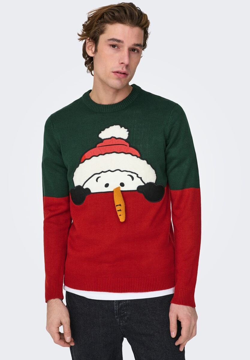 Свитер Onsxmas Reg Block Crew Unisex Only, зеленый