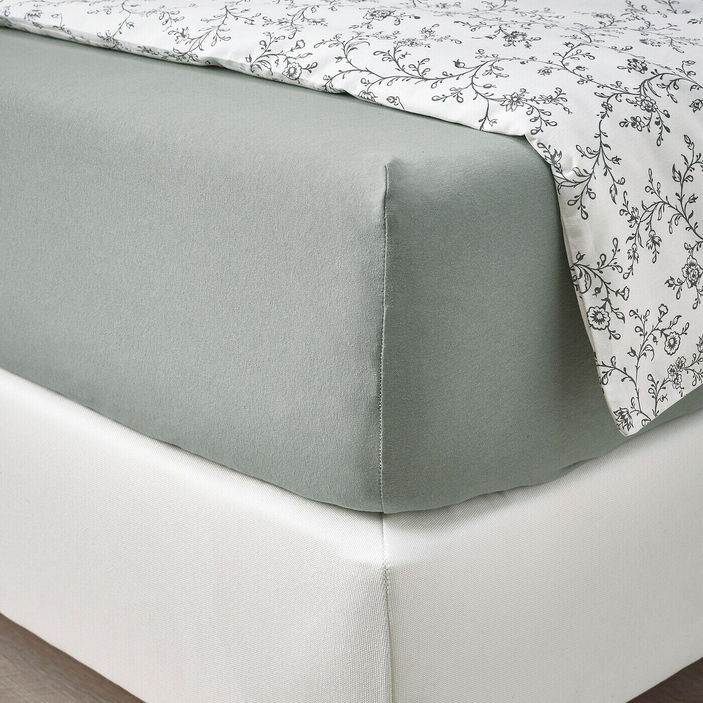 ВОРВИАЛЬ Простынь на подкладке - серо-зеленый 80х200 см. Комфортный мягкий хлопковый трикотаж впитывает влагу и позволяет ей испаряться. Это создает сбалансированную температуру тела и сна на протяжении всей ночи. За трикотажной тканью легко ухаживать, ее нельзя гладить.