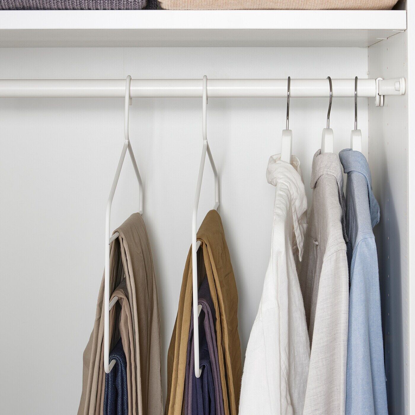ГОРДСМЭСТАРЕ Вешалка для юбки/брюк - белая. Поможет сэкономить место в шкафу, поскольку на вешалке можно разместить несколько пар брюк. Одинаково подходит для брюк, юбок, платьев и рубашек. Привнесет порядок в ваш гардероб и освободит место для большего. Также подходит для ванных комнат.