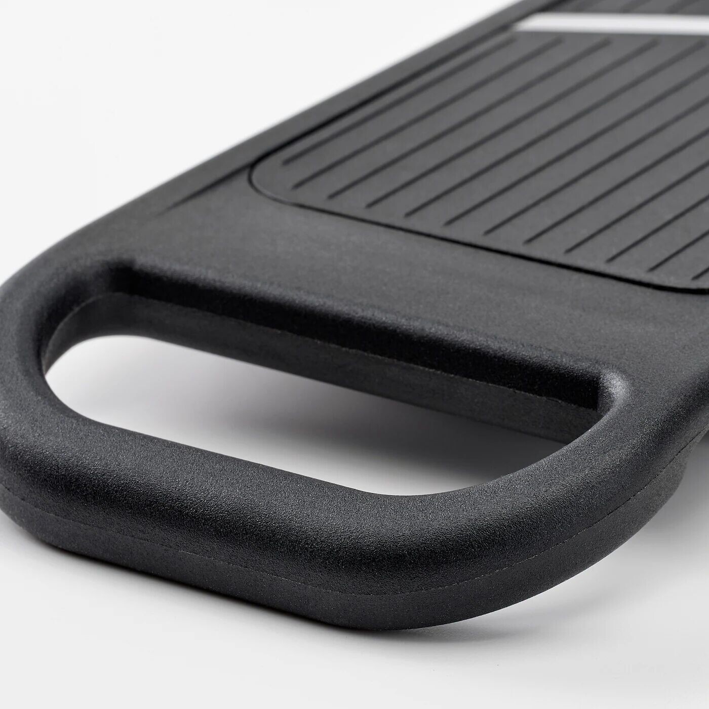 Овощерезка ИКЕА 365+ - черная. Ширину стрижки можно регулировать три раза с помощью колесика на задней стороне. Вы можете защитить свои руки, повернув диск в положение 0. Промойте изделие перед первым использованием. В комплект входит защита пальцев.
