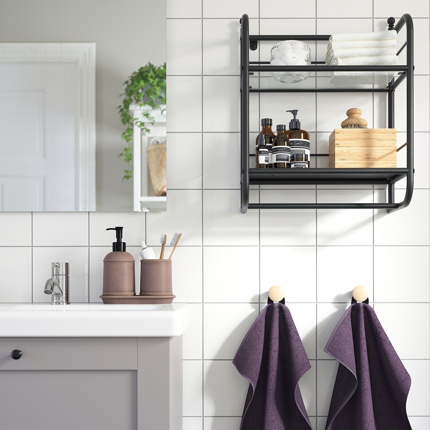 ФРЁШЁН Полка навесная - чёрный 40x51 см. С открытыми полками – так все быстро будет под рукой. Металлическая решетка сзади и по бокам предотвращает падение вещей. Полотенца можно повесить на стойку внизу. Съемные полки, легко моются.