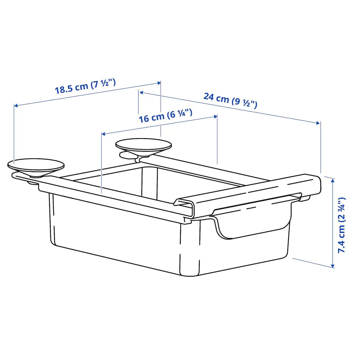 Направляющие на раме ящика подходят для большинства полок. Присоски надежно удерживают коробку на месте.