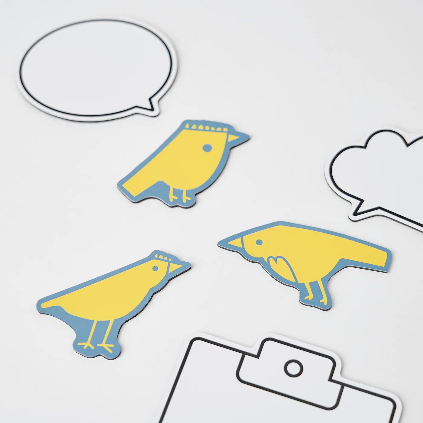 В этот набор входят 3 белых магнита, на которых можно писать, и 3 милые птички, которые с радостью помогут вашему ребенку систематизировать картинки и заметки. Декоративно и практично одновременно.