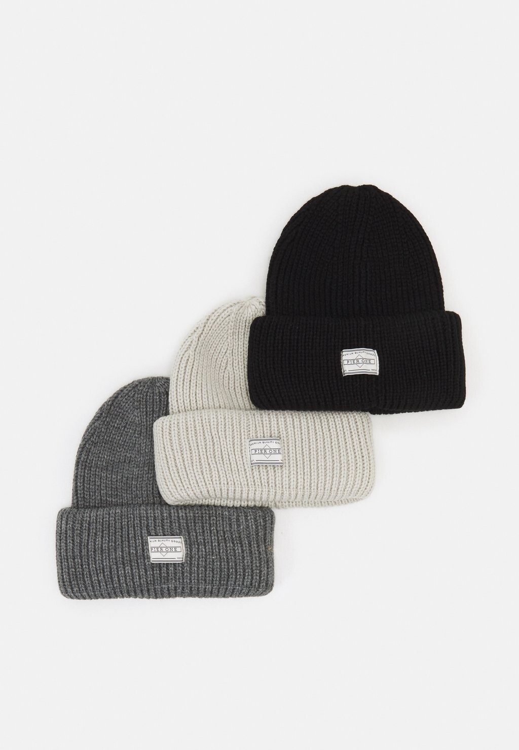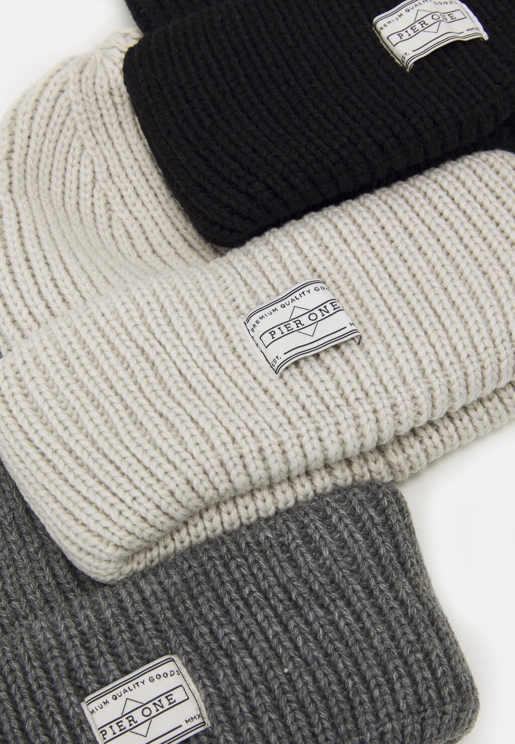 Шапка-бини Unisex 3 Pack Pier One, черный/темно-серый/грязно-белый