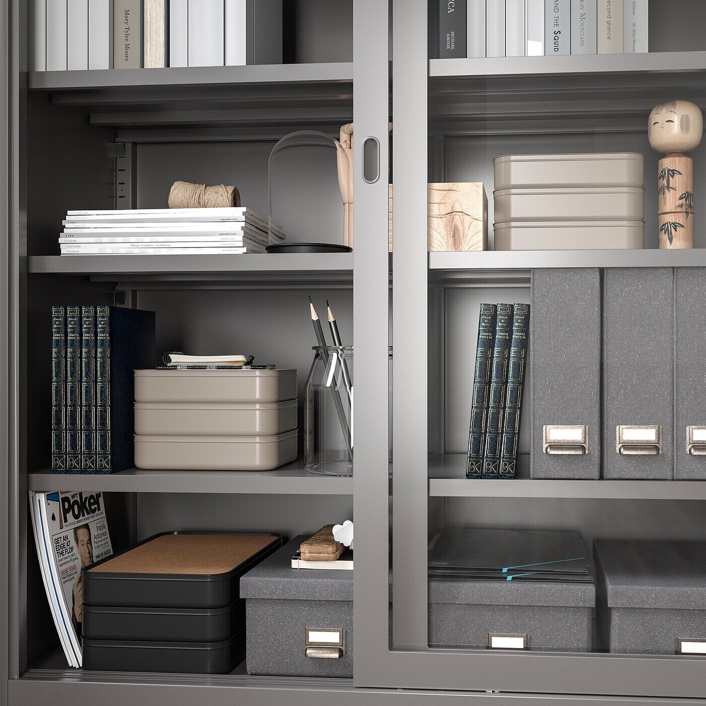 ХАРВМАТТА Коробка с крышкой - антрацит 24х35х6 см. Прочная металлическая коробка с пробковой крышкой, позволяющая легко ставить несколько коробок друг на друга, не царапая их. Коробка подходит для хранения бумаги и блокнотов (формата А4 и американских канцелярских товаров).