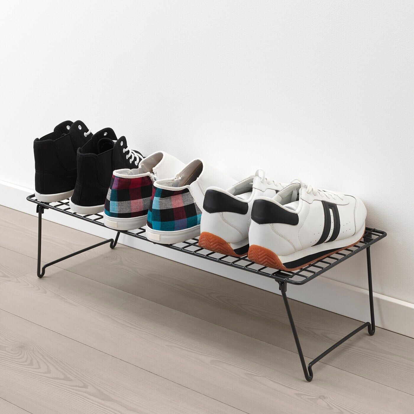 Одинаково практично как в прихожей для повседневной обуви, так и в шкафу для элегантной обуви. Поскольку отделение для обуви можно сложить, вы можете хранить несколько штук и при необходимости использовать их для гостей. Полку для обуви можно штабелировать.