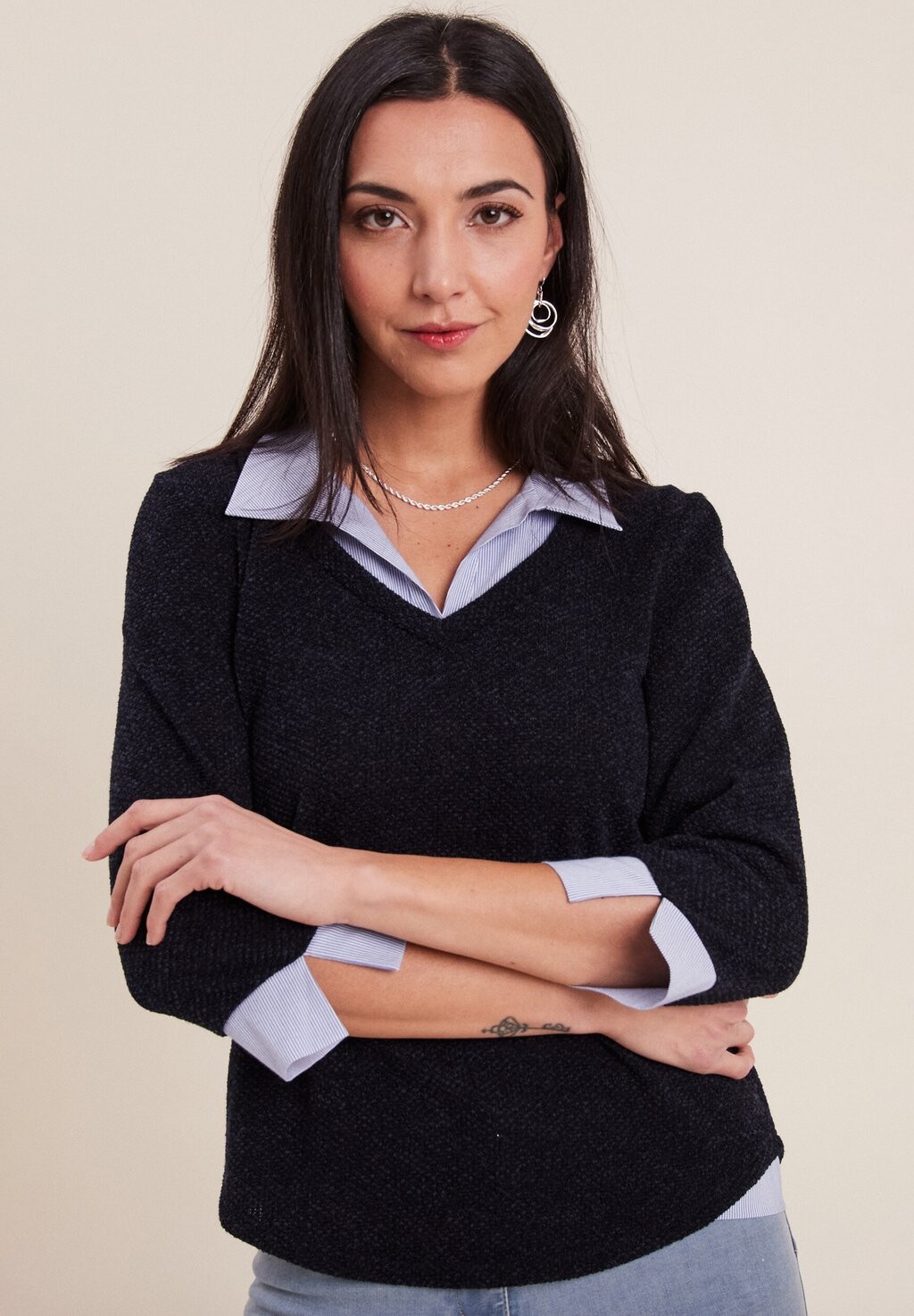 Вязаный свитер Mit 3/4-Ärmeln Breal, темно-синий 3 222₽