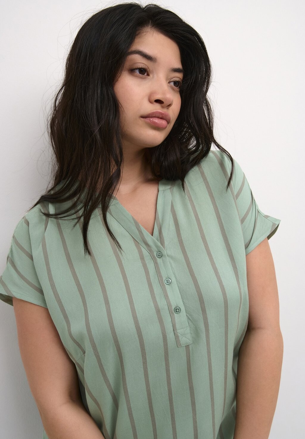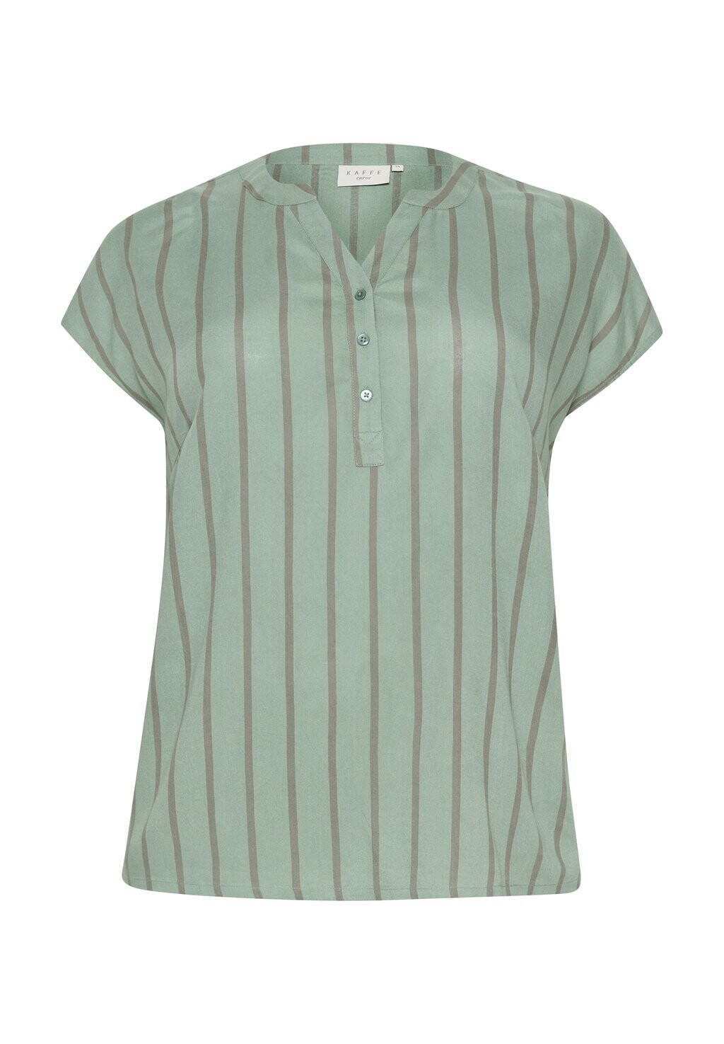 Блуза Kcsida Wing Sl Kaffe Curve, серо-гранитно-зеленая полоска