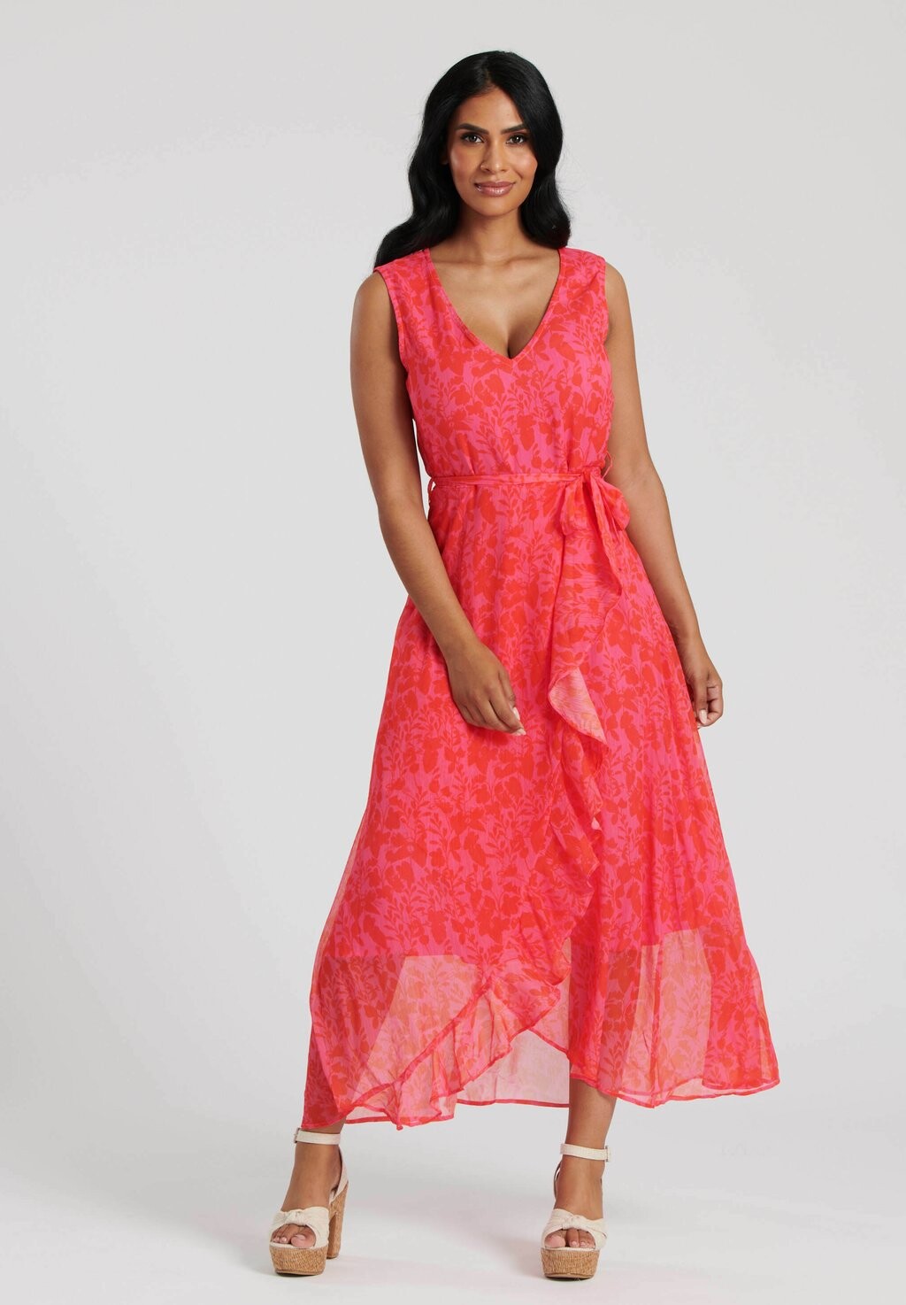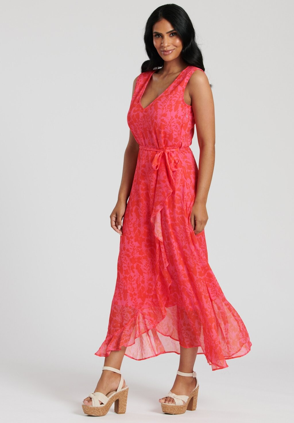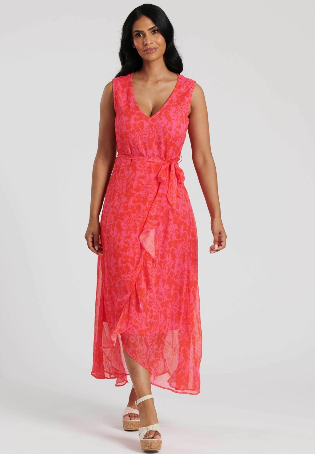 Длинное платье Summer Chiffon V Neck Frill Wrap South Beach, красное