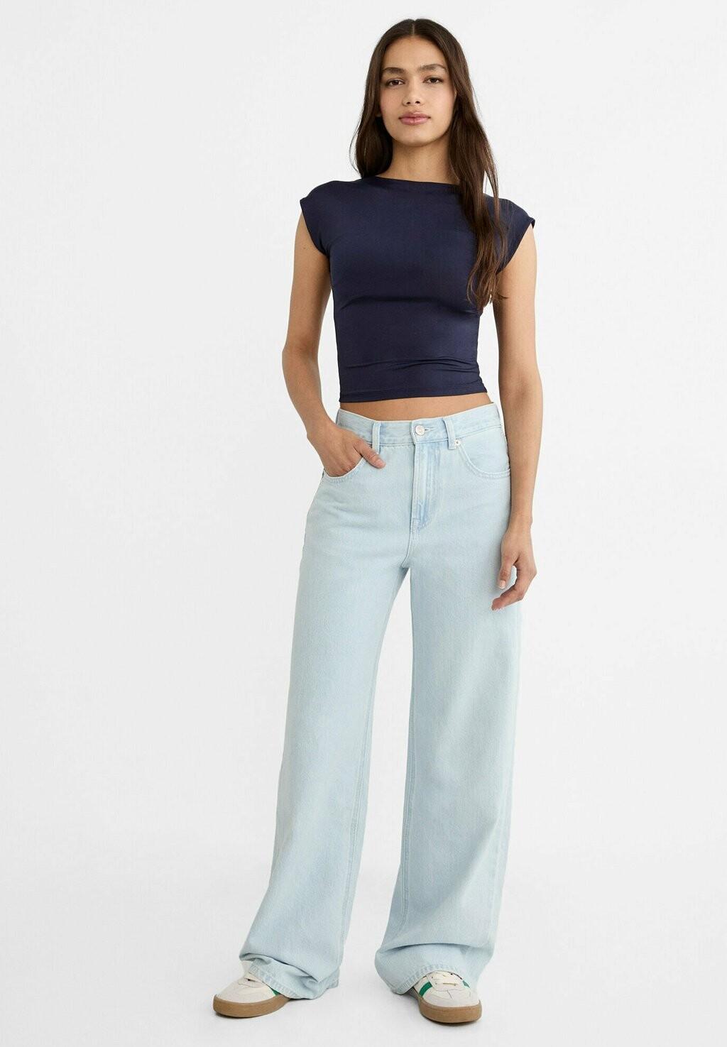 Футболка с принтом Open-Back Stradivarius, темно-синяя