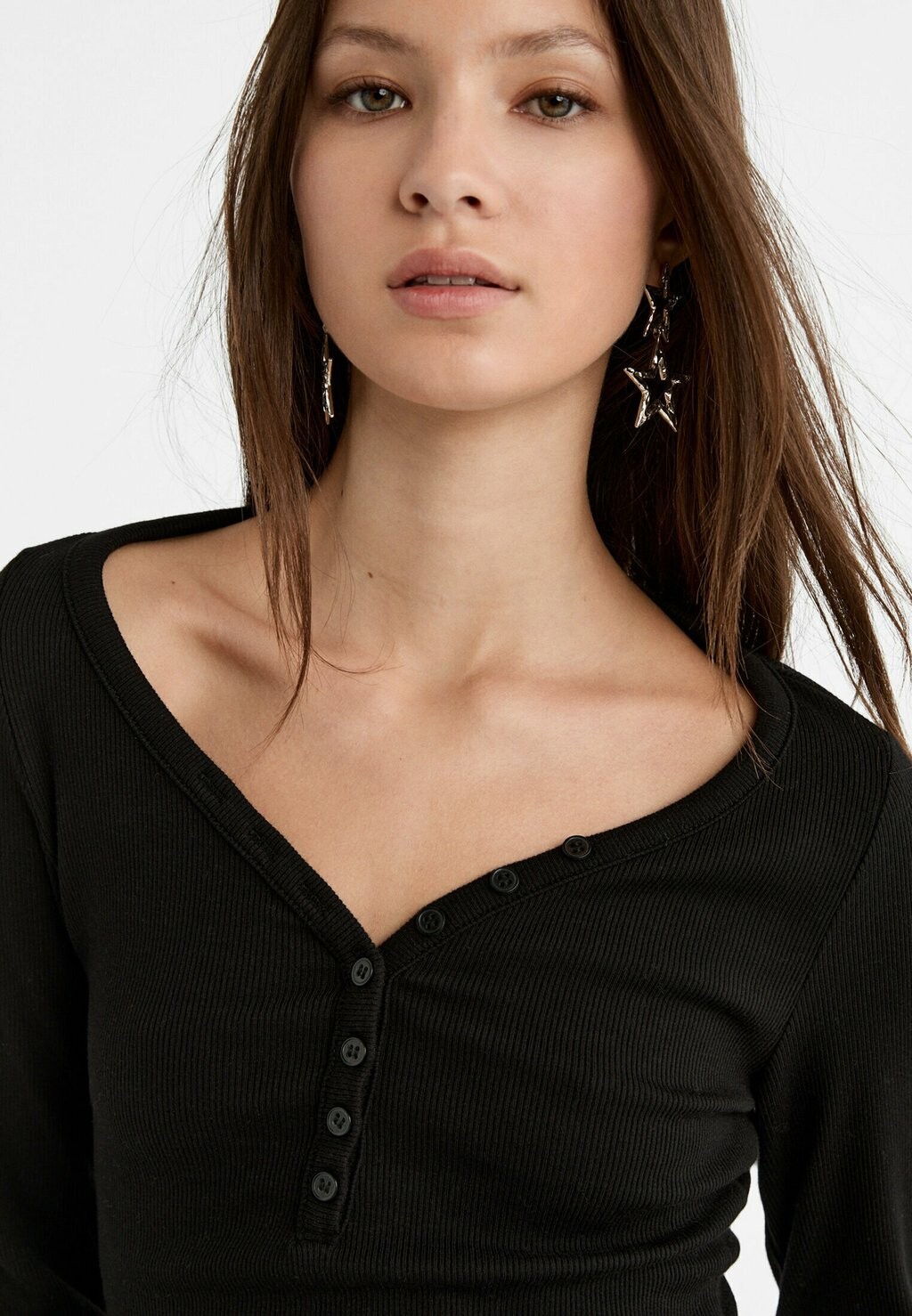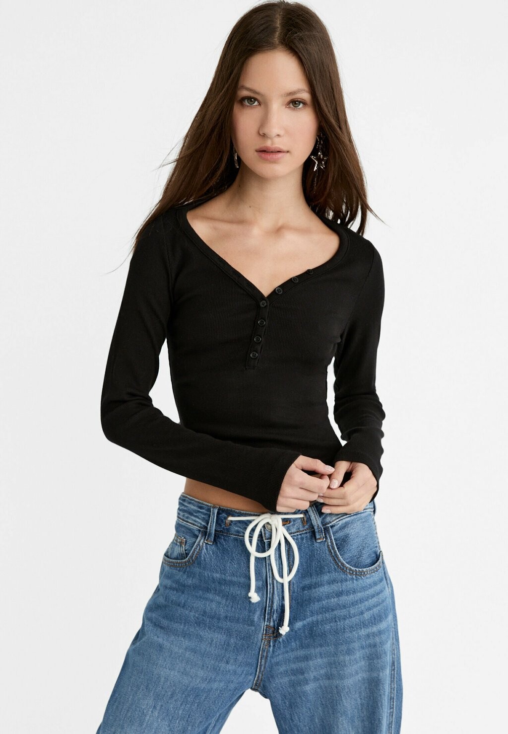 Футболка с длинным рукавом Stradivarius, черная 3 090₽