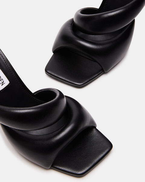 Шлепанцы KLOSS с квадратным носком сочетаются с наклонным каблуком и скульптурными ремешками-буффами, перекрещивающимися вокруг стопы, что придает дизайну сандалий округлый пузырьковый силуэт.