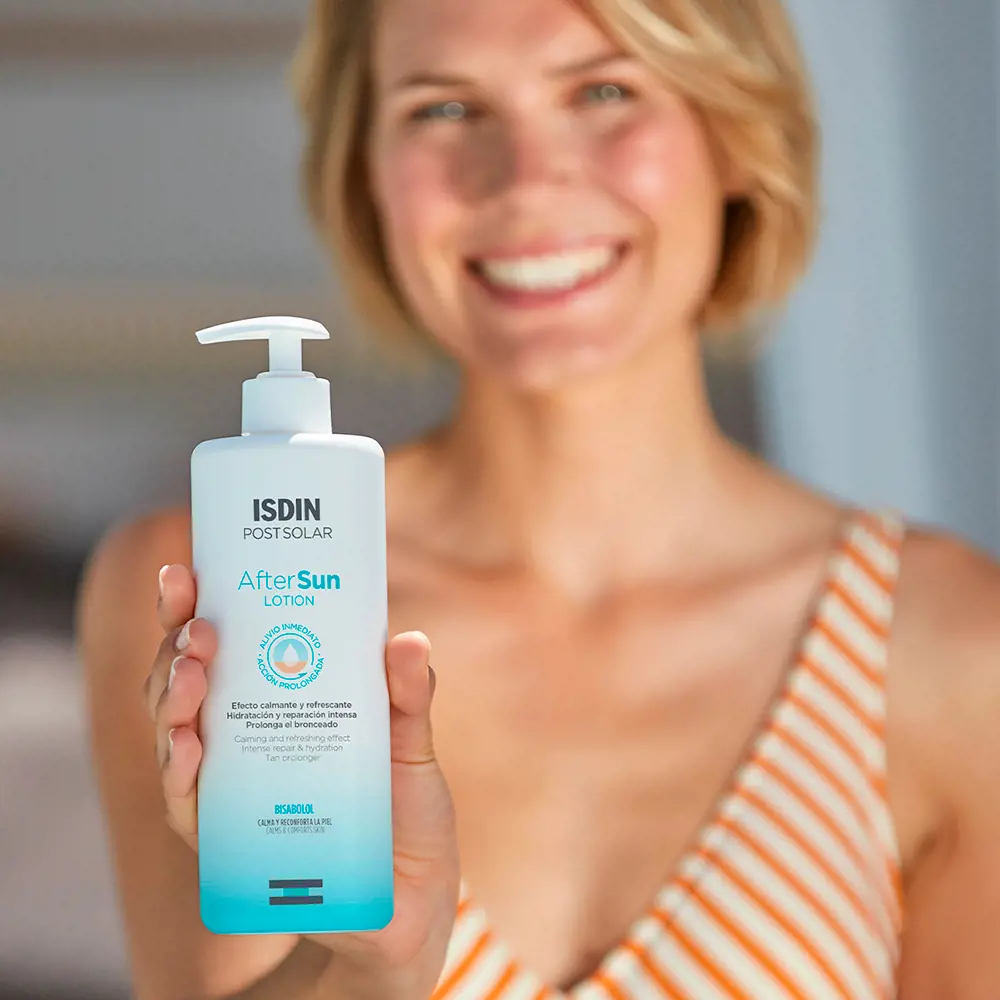 ЛОСЬОН ПОСЛЕ СОЛНЦА спокойствие и комфорт от ISDIN оказывает успокаивающий и освежающий эффект после пребывания на солнце благодаря содержанию ментола и ромашки. Увлажняет кожу, раздраженную воздействием солнца, и способствует ее интенсивному восстановлению благодаря содержанию бисаболола, ментола и ромашки. Новый ISDIN Post-Solar предотвращает шелушение кожи, продлевая загар. Успокаивает, освежает и продлевает загар.