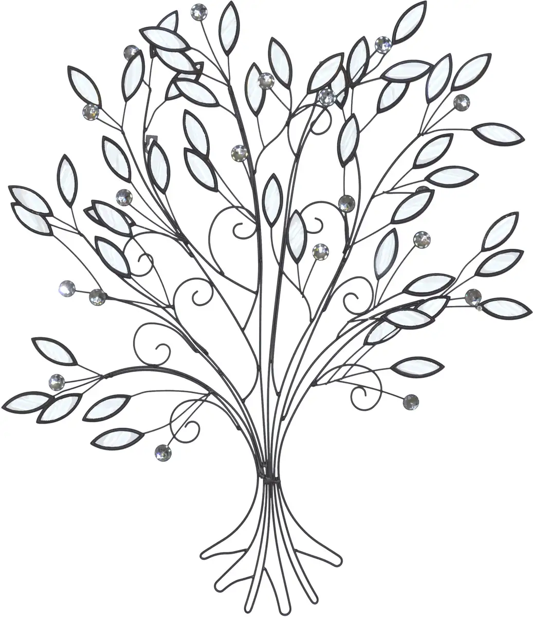 Настенное украшение "Букет цветов" окрашено в черный цвет. Листья с зеркальным акриловым стеклом, приклеенным и дополнительно комбинированным с круглыми декоративными камнями из оргстекла.