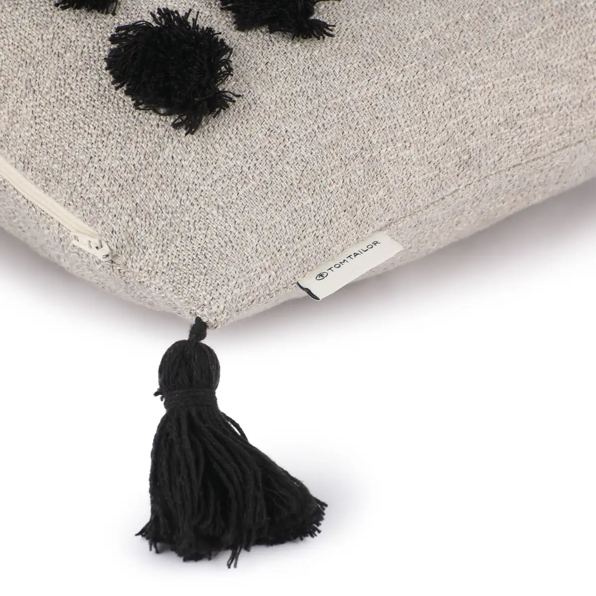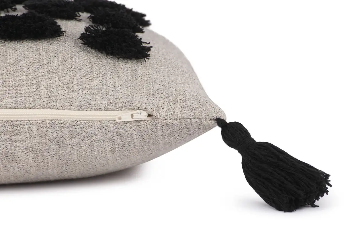 Подушка Tufted Blobs из новой коллекции TOM TAILOR совсем не скучна! Изысканный дизайн вышитых капелек с черной бахромой создает великолепный образ и придает подушке особенный вид. Задняя часть имеет гладкую поверхность однотонного цвета. Благодаря четырем декоративным кисточкам по углам и грубой ткани, напоминающей лен, чехол на подушку привлекает внимание и становится визуальным акцентом на вашем диване или спальной зоне. Модель оснащена практичной молнией для удобного надевания и снятия, ее можно легко стирать в стиральной машине при температуре до 30°C. «Tufted Blobs» доступен в цветовых сочетаниях натуральный-черный и натуральный.