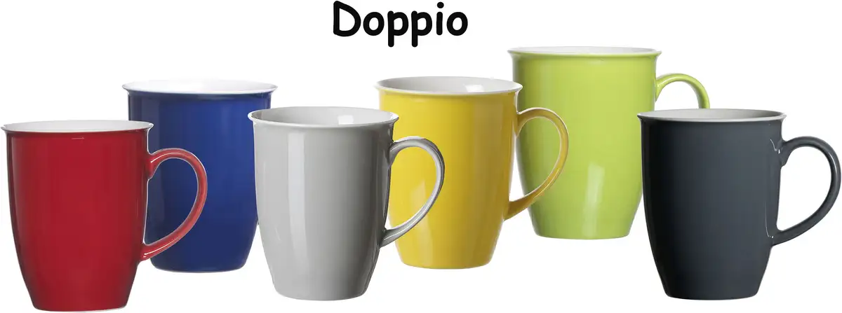 Серия посуды Doppio впечатляет вневременным, простым языком дизайна и привлекательными цветами. В соответствии с девизом «Смешивай!» разные цвета можно комбинировать по желанию или в зависимости от случая.