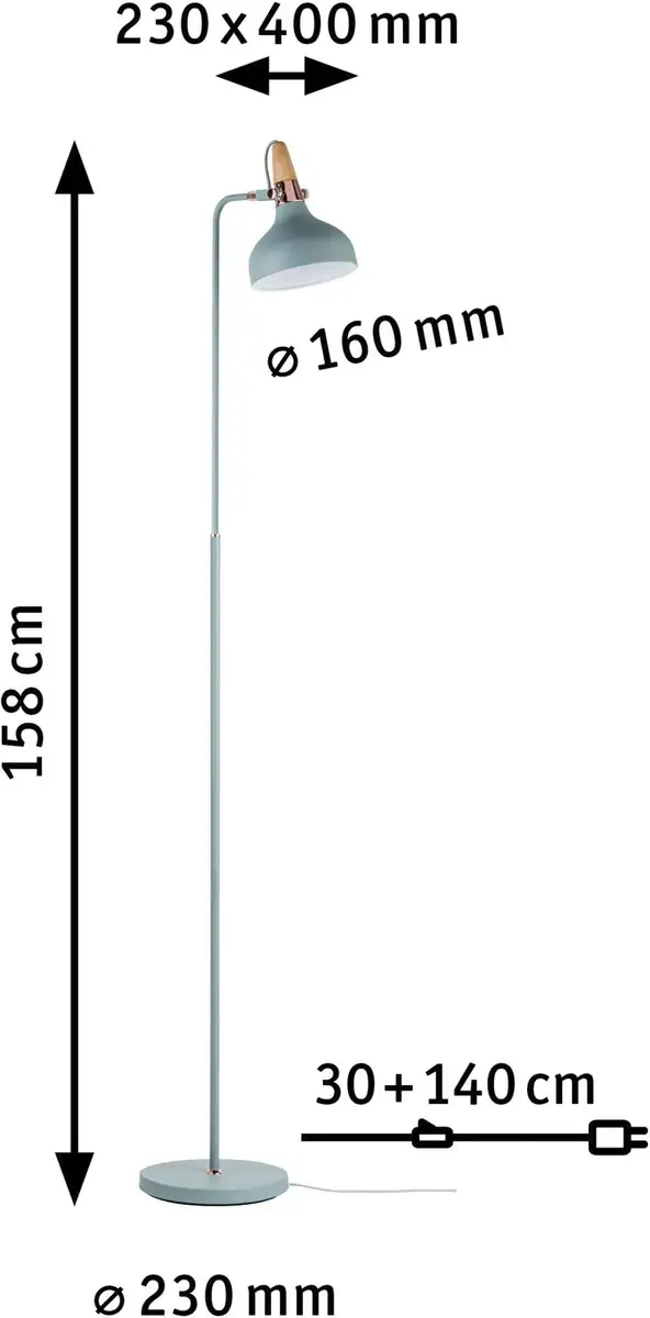 Светодиодный торшер Paulmann "Juna", 1 лампочка, лампочка E14 | без лампочки, Е14 Рост: 158,0 см., светло-зеленый/медный цвет