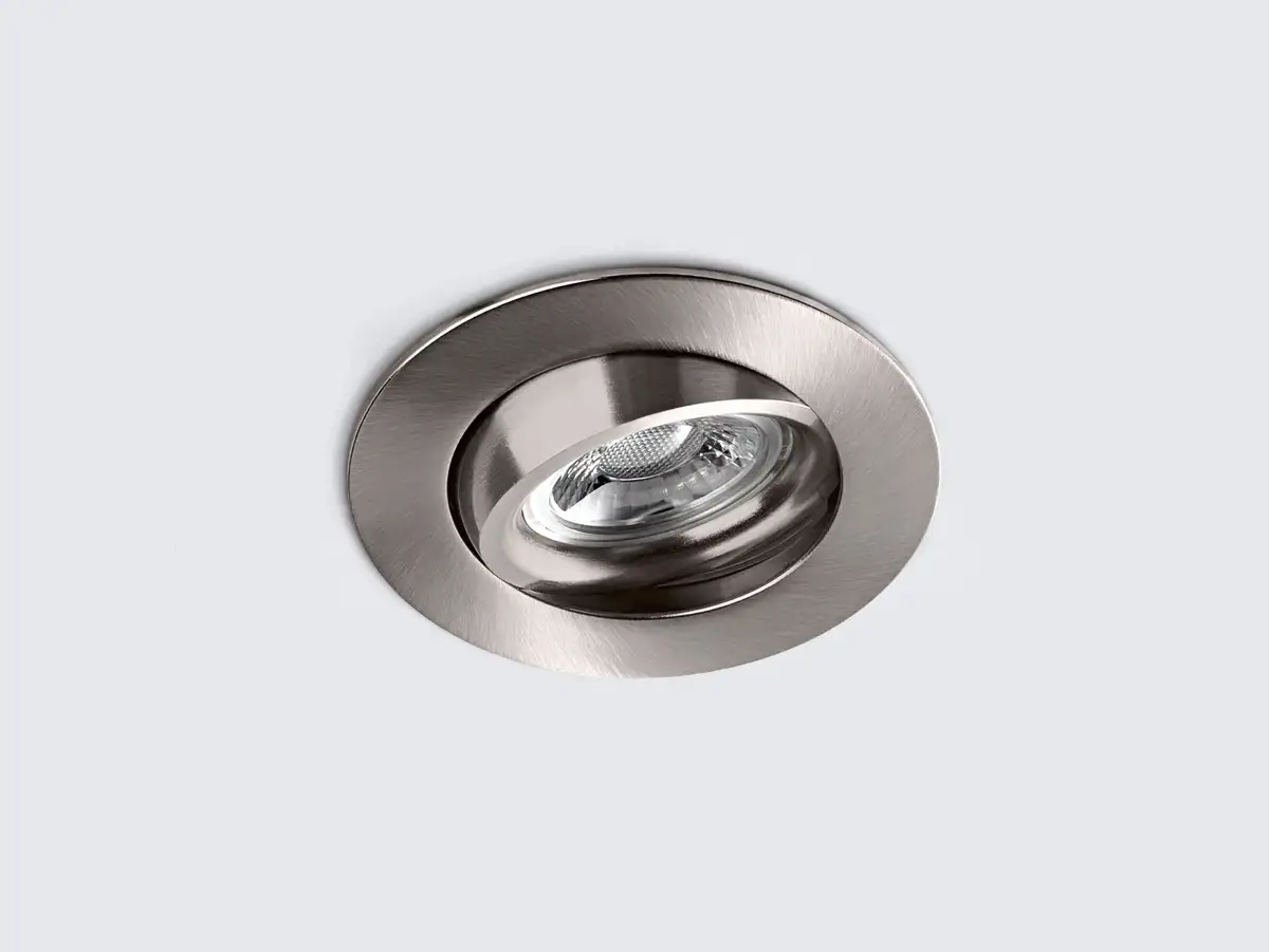 Высококачественный и прочный светодиодный встраиваемый точечный светильник для стандартных вырезов (68 мм). Осветительный блок можно поворачивать и поворачивать. При уменьшении яркости сноп света меняется и становится теплее до 2000 К, что соответствует свету приглушенной лампы накаливания.