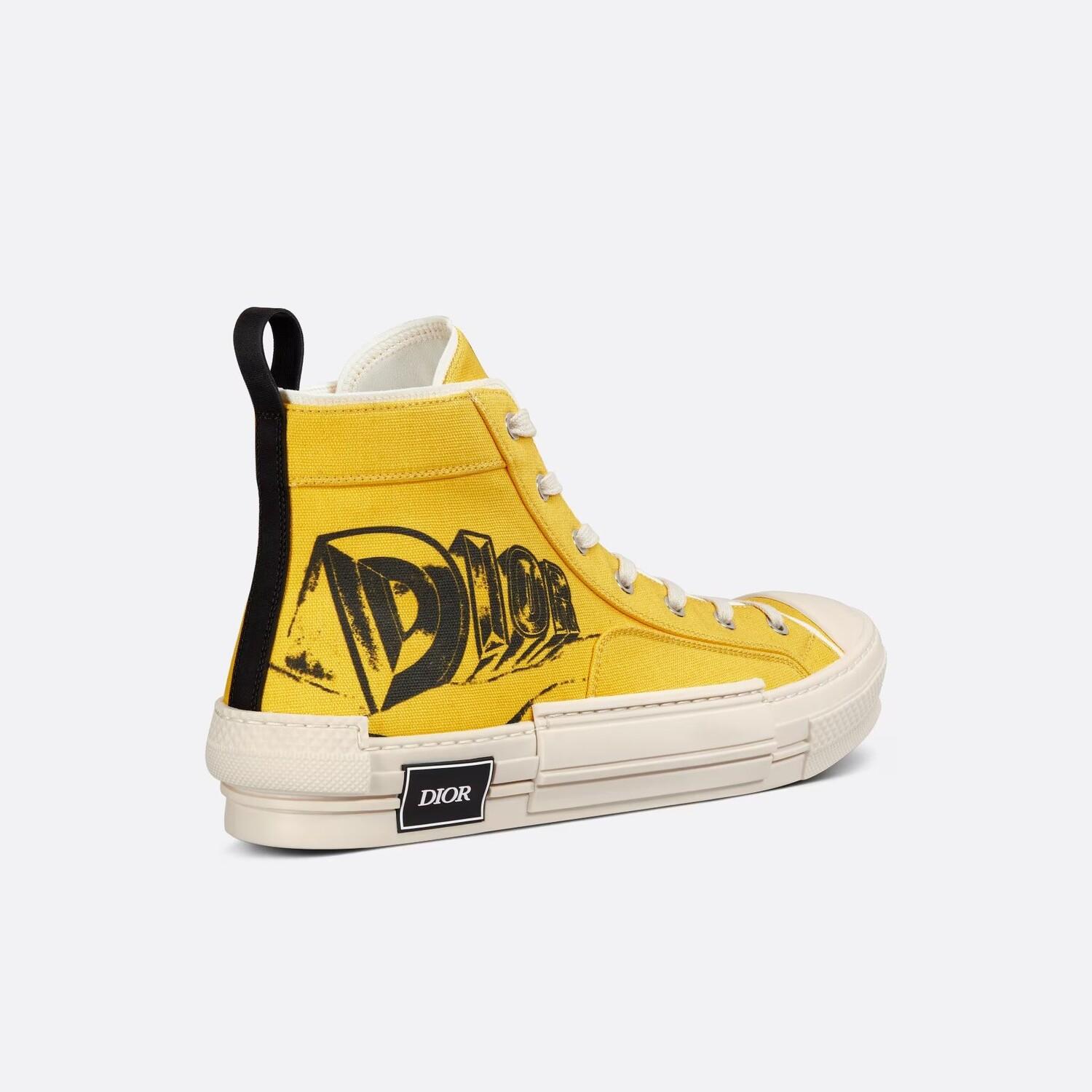 Ким Джонс пересматривает кроссовки B23 с высоким верхом в современной версии из желтой парусины. Украшенные графическим логотипом AsteroDior, вдохновленным космическими операми 1970-х годов и напоминающими вселенную межгалактической пустыни, эти кроссовки имеют вечные коды кроссовок, такие как люверсы и шнуровка спереди, кремовая резиновая подошва с контрастными вставками, укрепленный закругленный носок и язычок на щиколотке. Кроссовки легко сочетаются с любым повседневным нарядом.