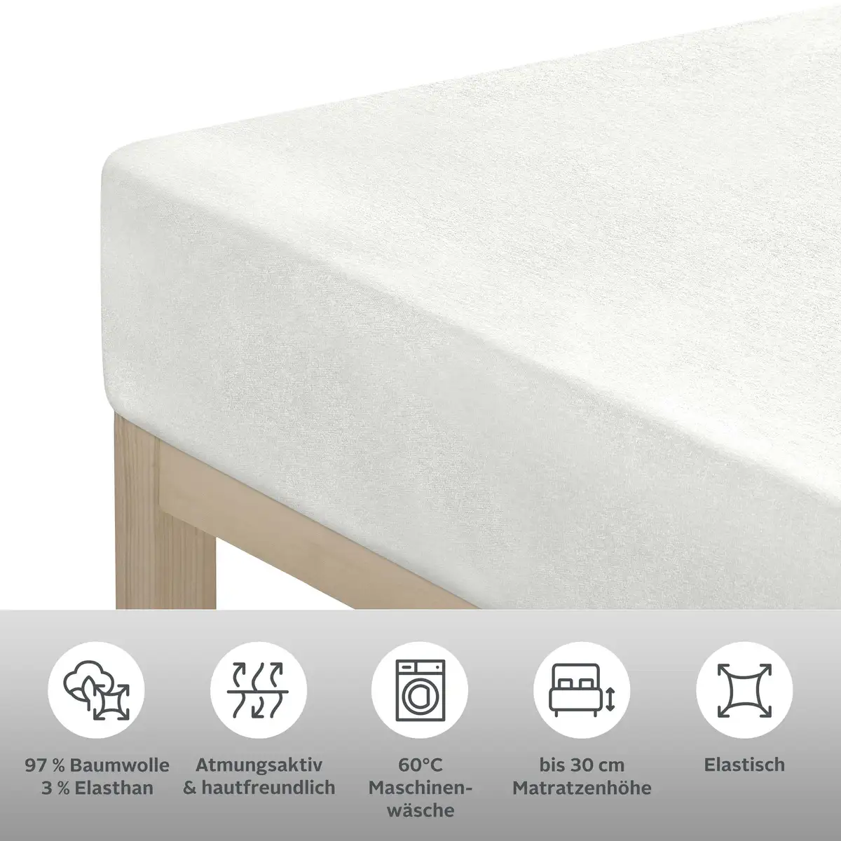 Подробности Количество деталей: 1 шт. Резинка: по всему периметру. Внешний вид/Стиль Оптика: однотонная Цвет: белый Подходит для Подходит для высоты матраса: 30 см Подходит для размера матраса: 180-200x200-220 см Подходит для типа матраса: стандартный матрас Кровати с пружинными матрасами Водяные кровати