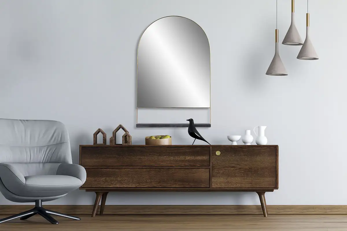 **Практичное настенное зеркало с необычными акцентами**