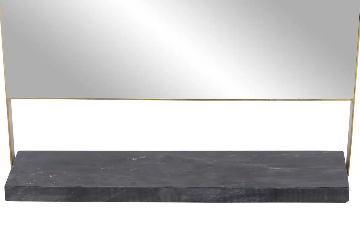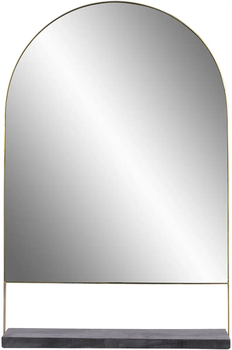 Это настенное зеркало украсит вашу комнату с визуальной и практической точки зрения. Благодаря своей стильной форме, напоминающей классические зеркала в восточном дизайне, оно само по себе привлекает внимание. Кроме того, он дополнен изящной металлической рамкой, что придает модели еще больше экстравагантности. Современный дизайн настенного зеркала становится практичным благодаря мраморной полке. В нем можно легко хранить повседневные вещи. Это также можно использовать для создания еще большего количества декоративных акцентов. Это означает, что вы можете легко установить элементы освещения или декоративные предметы. Вы можете добиться особенно элегантных акцентов с помощью шикарных чайных свечей или даже нескольких суккулентов. Настенное зеркало с восточным оттенком отличается гибкими возможностями дизайна и может вписаться в любую комнату.