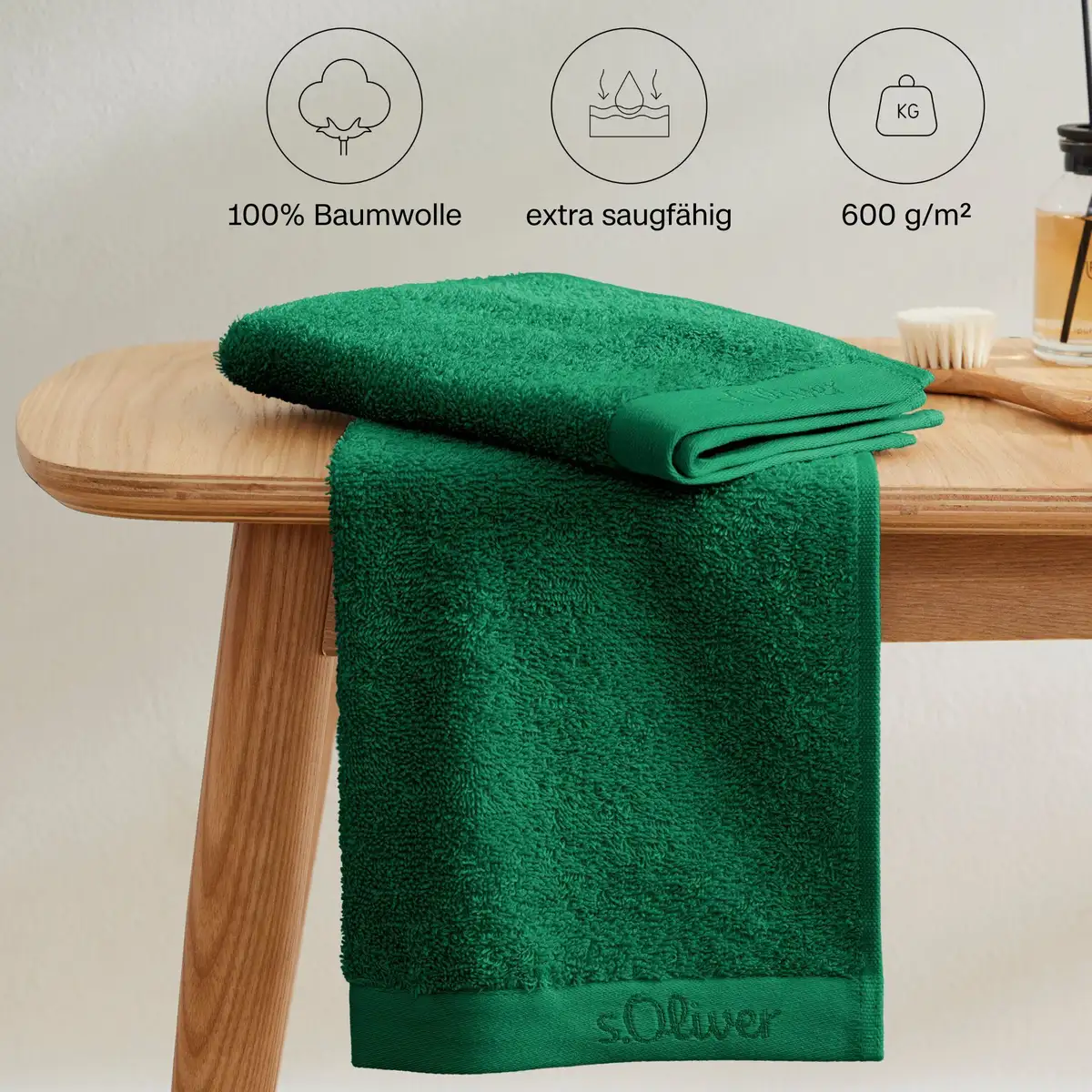 Полотенце s. Oliver станет прекрасным дополнением любой ванной комнаты. Высококачественные полотенца изготовлены из 100% хлопка и поэтому создают особенно мягкое и приятное ощущение на коже. Полотенце имеет вес 600 г/м², что означает особенно высокое качество и долговечность. Он быстро сохнет и идеален для повседневного использования, для посещения спортзала или бассейна. Дизайн полотенца простой и элегантный, с фирменным логотипом S. Oliver в углу. Он доступен в различных цветах и придаст стильный вид любой ванной комнате. Незаменимая вещь в каждом доме!