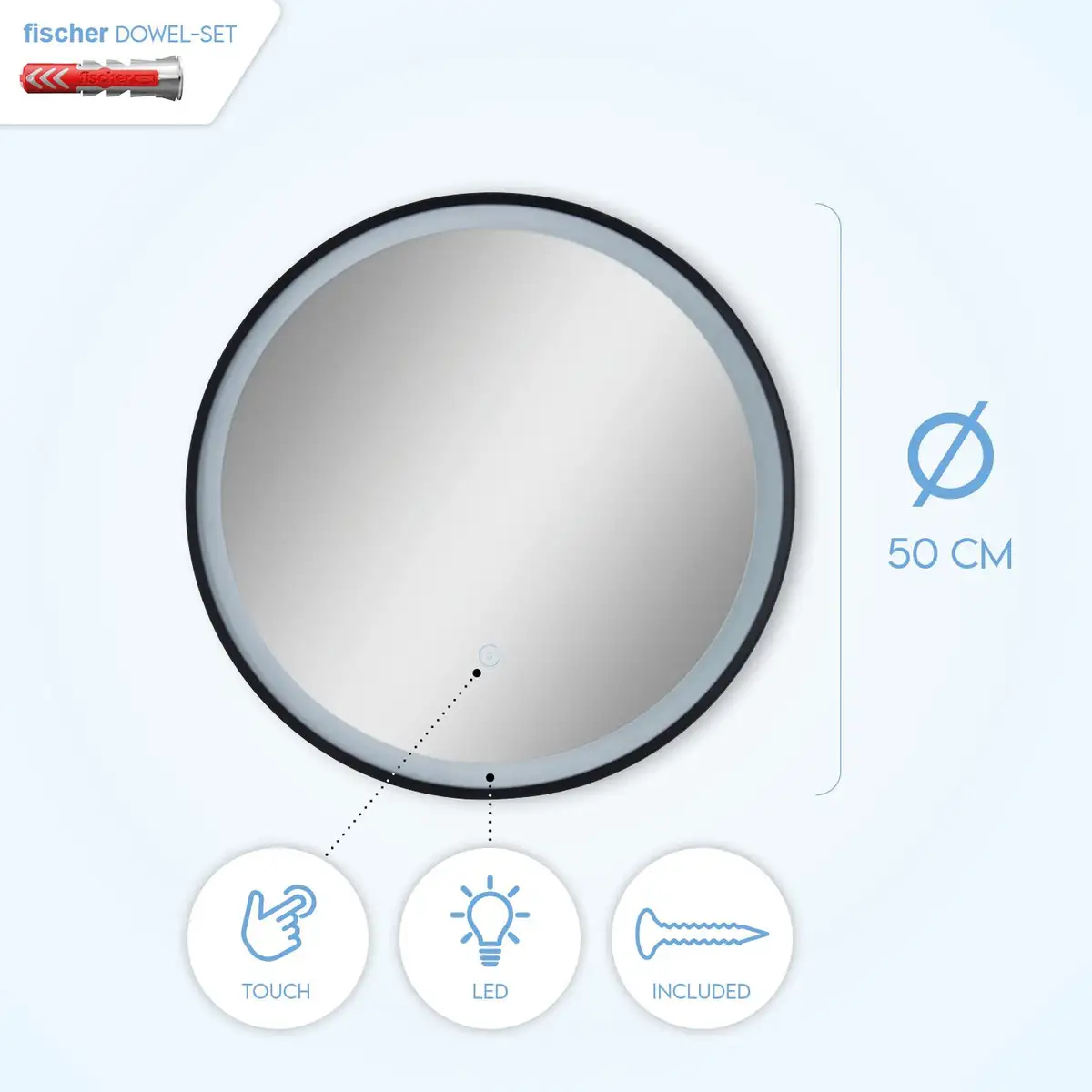 ЛАМПА: Если вы устали от недостатка света при взгляде в зеркало или от постоянного ослепления от неприятно яркого света, то этот элегантный зеркальный светильник станет решением. Сочетание высококачественного зеркала и грамотно установленного светодиодного источника света не только очень практично, но и привлекает внимание. Эта круглая лампа с изящной черной рамкой впечатляет модным сенсорным выключателем на передней панели, поэтому нет раздражающих кабелей и кнопок. Лампа также поставляется с высококачественными дюбелями и винтами fischer DUOPOWER, которые обеспечивают наилучшее удержание. на каждой Гарантийной стене. ДИЗАЙН, КОТОРЫЙ МОЖНО ВИДЕТЬ: «Зеркало делает комнату больше», многие слышали эту фразу много раз, но теперь зеркало также делает комнату ярче, а также привлекает внимание своим элегантным дизайном. Этот практичный зеркальный светильник станет идеальным домашним аксессуаром для ванной комнаты, коридора или прихожей, поскольку его сдержанный вид легко вписывается в любой стиль интерьера. Эта лампа не требует раздражающих кабелей и переключателей и впечатляет приятным ярким окружающим светом, который активируется с помощью стильного сенсорного переключателя на передней панели. ТЕХНИЧЕСКИЕ ДАННЫЕ: Подсветка зеркала со стационарно установленным светодиодным источником света (4000 К - нейтральный белый, индекс цветопередачи: 80), 170 лм, без регулировки яркости, включая дюбели fischer DUOPOWER, шурупы, диаметр: 50 см, вес 3,3 кг, 220- 240 В, 50/60 Гц, 14 Вт, класс защиты: 1, максимальная температура окружающей среды: 40°C, гарантия на лампу: 5 лет.