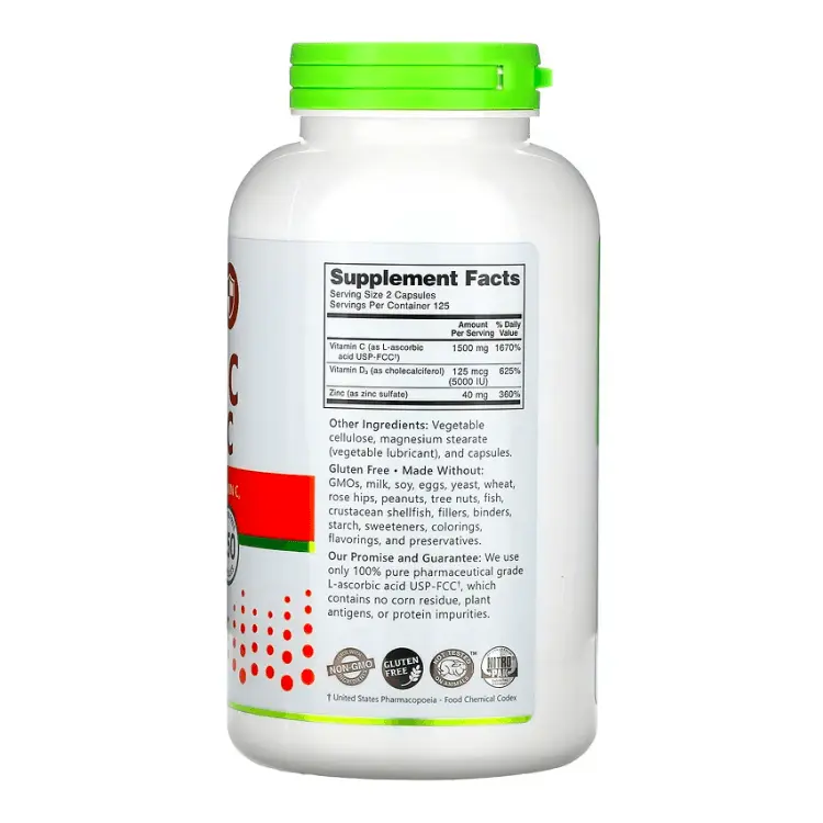 Капсулы NutriBiotic с витаминами C + D3 & цинком снабжают организм 100% витаминами С и D и цинком фармацевтической степени чистоты — необходимыми питательными веществами.