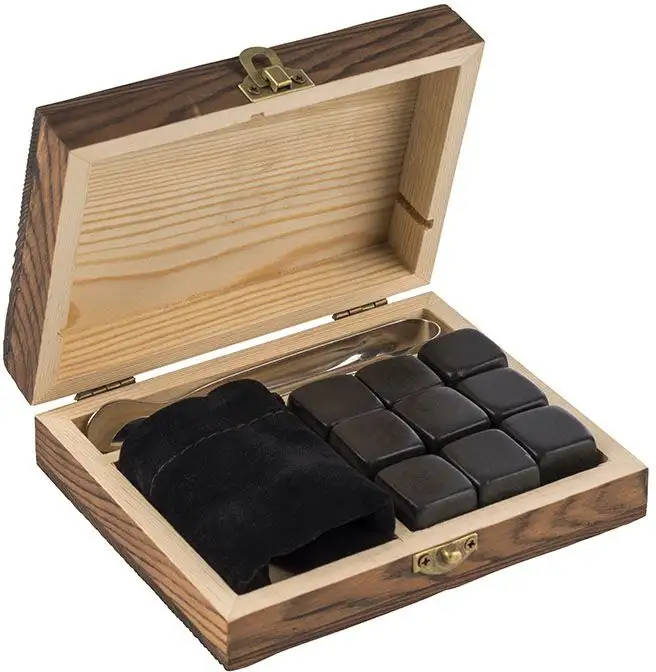 Форма для льда Buddy's, (набор), (охлаждающие камни), набор камней для виски, включая деревянную коробку и щипцы 10х13 см, коричневый