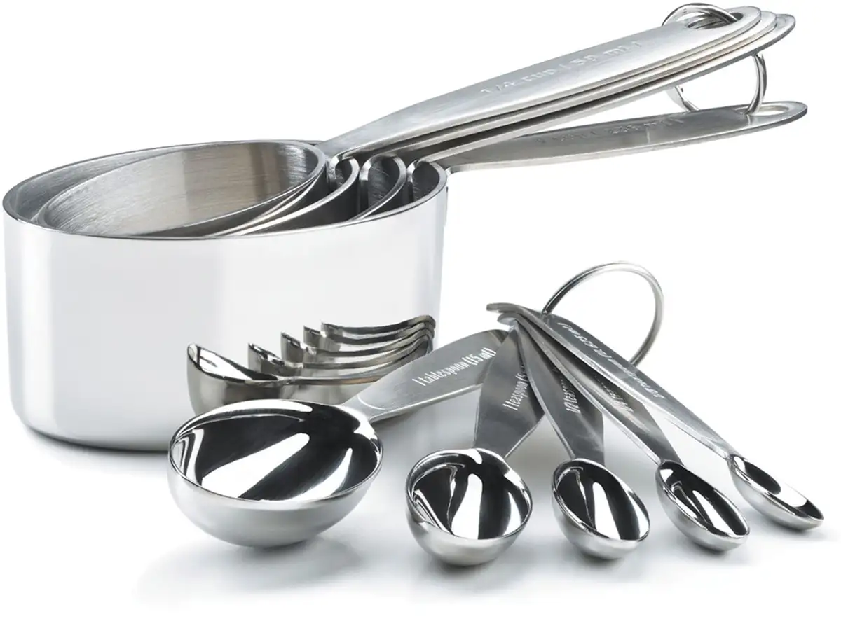 Набор мерных ложек из нержавеющей стали 1/8,1/4,1/2, а также 1 чайная ложка и мерная столовая ложка. Идеальный подарок! Подарочный набор из 5 мерных ложек из нержавеющей стали. Гладкая овальная форма с длинными ручками удобно помещается в любую банку для специй или большой контейнер. В каждый набор складывающихся ложек входит удобный зажим для хранения, позволяющий держать их вместе. Толстые, плоские края позволяют легко снимать ложки ножом. Слегка изогнутые ручки позволяют ложкам надежно лежать на столешнице и не опрокидываться. Можно мыть в посудомоечной машине. ПАТЕНТ США №. Д439175. Эти измерительные приспособления необходимы на каждой кухне. Прочная конструкция, способная выдержать давление при загрузке ложки в контейнер с коричневым сахаром или мукой. Изготовлен из самой твердой нержавеющей стали.