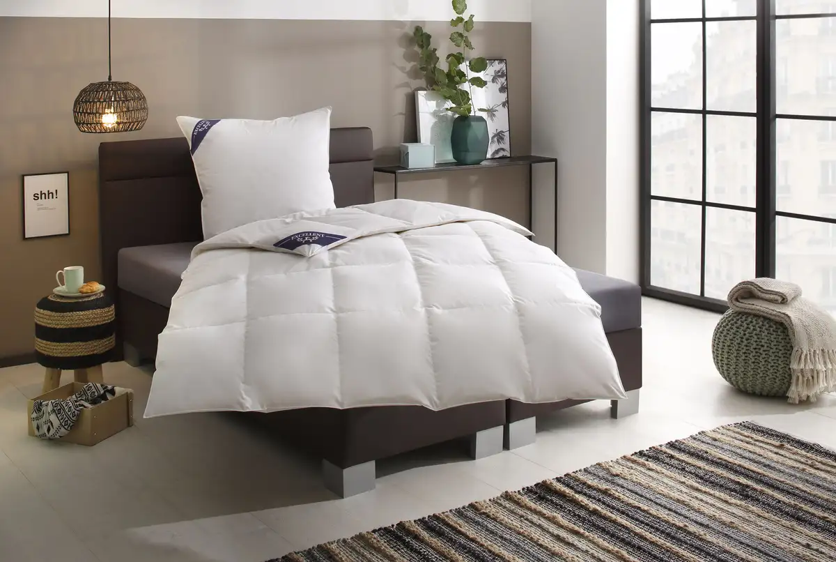 Стеганое пуховое одеяло «Вена» от бренда «Excellent» впечатляет уютным, теплым наполнителем, который позволяет спокойнее спать даже тем, кто страдает аллергией на домашнюю пыль. Он обеспечивает спокойный сон благодаря комфортным свойствам и стабильности размеров. Одеяло наполнено очень легким пухом и небольшим количеством высококачественных перьев. Благодаря стежке они не скользят, поэтому одеяло сохраняет тепло в течение длительного времени. Чехол из красивого хлопка еще больше подчеркивает комфортные свойства одеяла.