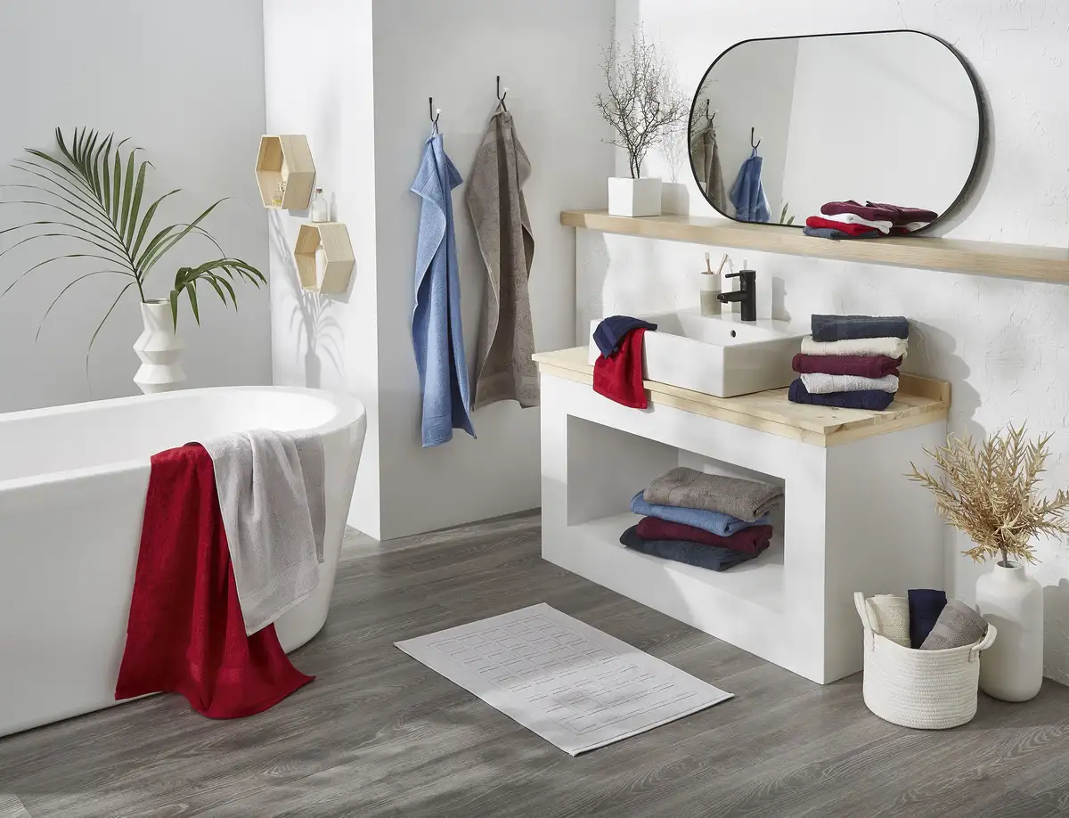 Наша современная классика из чистого хлопка обеспечивает исключительно приятное ощущение на коже. Серия Uni идеальна для повседневного использования и впечатляет своими впитывающими свойствами и быстросохнущим качеством. Стабильная по размерам кайма в простом дизайне придает шарфам неподвластную времени элегантность. Эта серия доступна в обширной цветовой гамме, от классической до современной. Ткани имеют поверхностную плотность около 450 г/м², коврики для ванной имеют поверхностную плотность около 700 г/м².