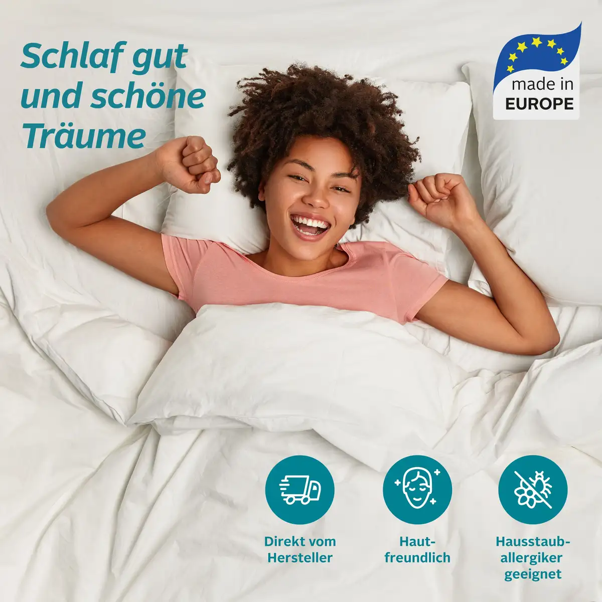 Создает приятную атмосферу для сна – пушистое одеяло «Лотос» от QUEENS TEXTILES. Он впечатляет своим экологически чистым, мягким материалом. Биоразлагаемые древесно-целлюлозные волокна создают идеальный баланс влаги. В качестве наполнителя используется спирально извитое 3D-волокно, которое гарантирует легкость и превосходно выполняет функцию теплоизоляции. Это обеспечивает здоровую и сухую среду для сна. Благодаря простоте ухода и возможности стирки при температуре до 60 °C это пуховое одеяло из синтетического волокна идеально подходит для людей с аллергией на домашнюю пыль. Высококачественные материалы обеспечивают непревзойденный комфорт сна в пушистом пуховом одеяле «Лотос» от QUEENS TEXTILES.