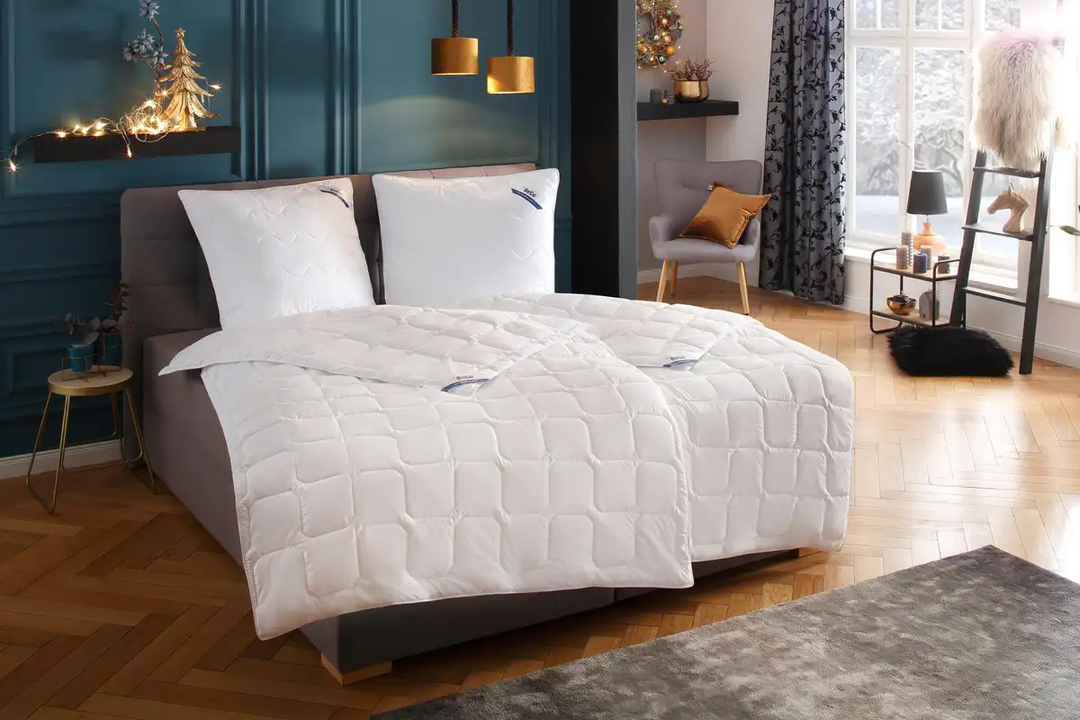Уютное пуховое одеяло «2 по цене 1» от BeCo имеет нормальный класс теплоты и может использоваться круглый год. Он имеет мягкий чехол из микрофибры, который особенно приятен для кожи и обладает воздухопроницаемыми свойствами. Тщательная стежка обеспечивает оптимальное распределение наполнителя. Края чехла также имеют высококачественную кромку и обеспечивают чистую отделку. В сочетании с пушистым наполнителем из климатического волокна это обеспечивает идеальный теплообмен. Одеяло из микрофибры отличается простотой в уходе, его можно стирать при температуре до 60 °C и сушить в стиральной машине. При заказе вы бесплатно получаете летнее одеяло соответствующего размера. Уютное одеяло «2 по цене 1» от BeCo обеспечивает приятную атмосферу для сна.