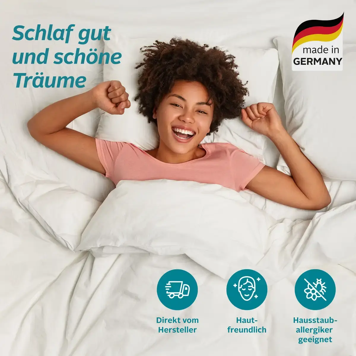 ОДЕЯЛО: Сделано в Германии, подходит для аллергиков (для тех, у кого аллергия на домашнюю пыль), чехол безопасен для кожи.