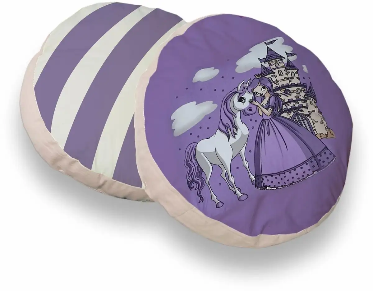 Набор круглых подушек из двух предметов с разными мотивами и цветами. Подушки двусторонние и имеют разные цвета или мотивы с каждой стороны. Идеальный дополнительный продукт. Чехол из 100% хлопка.