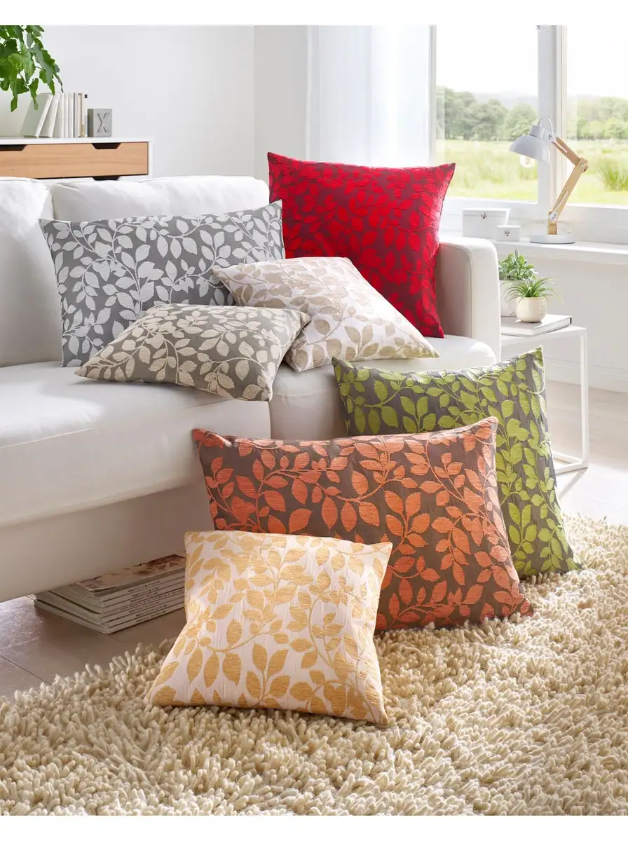 Чехлы на подушки с характерным узором в виде листьев. Отдельные цвета прекрасно сочетаются друг с другом! 57% полиэстер, 43% полиакрил. Машинная стирка до 30°С.