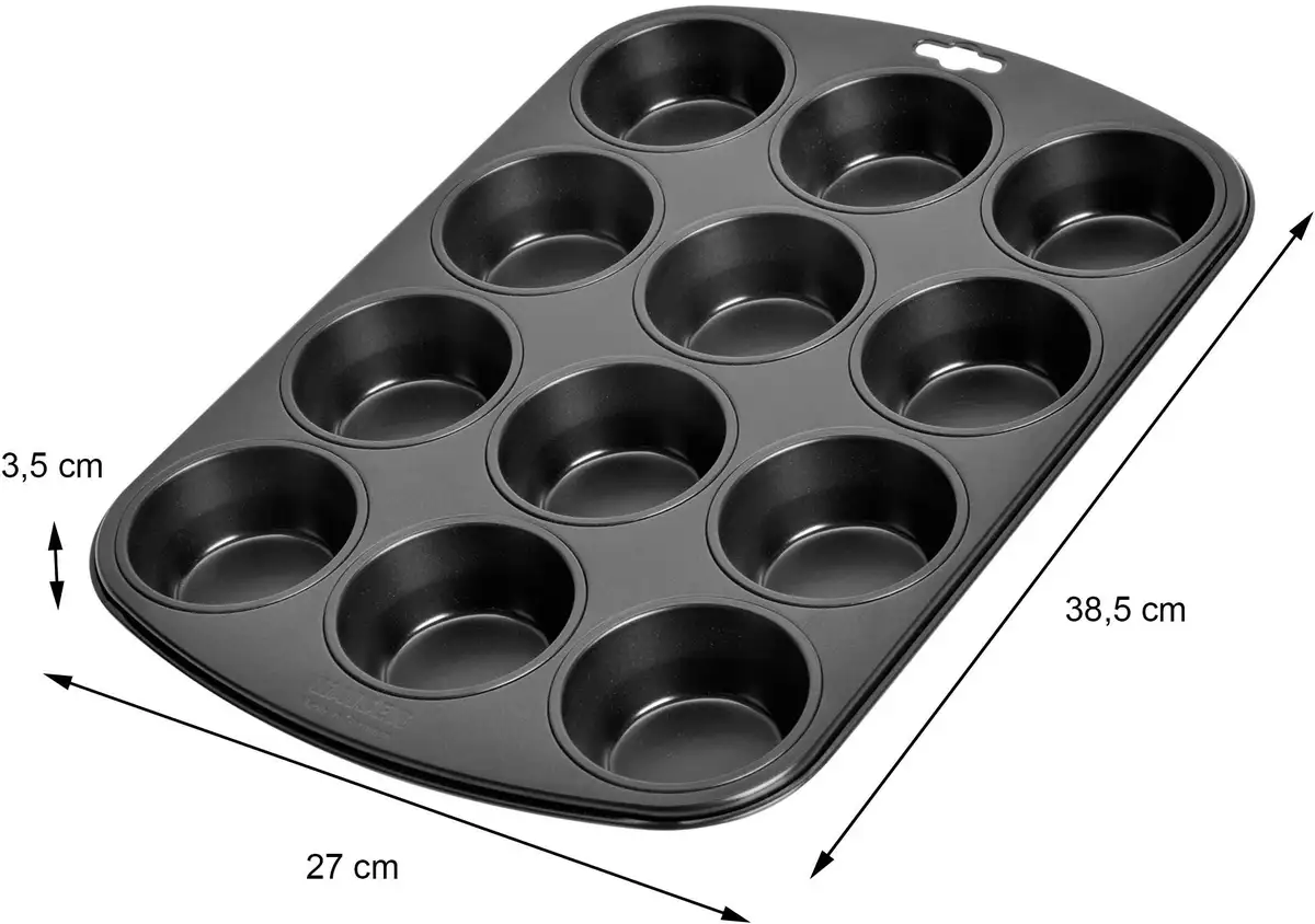 Форма для выпечки кексов выглядит как противень с несколькими чашеобразными углублениями. Они бывают разных размеров и позволяют испечь шесть, двенадцать или 24 кекса за один раз. Металлические формы для кексов имеют антипригарное покрытие, поэтому смазывать их не нужно. Бумажные формочки не нужны, просто заливайте тесто прямо в форму для выпечки – тесто не прилипает и все кексы имеют ровную форму. То же самое касается и силиконовых формочек для кексов. Благодаря гладкой поверхности готовые маффины легко вынимаются из формы. Формы для выпечки кексов легко мыть, их можно мыть вручную влажной тряпкой или под проточной водой.
