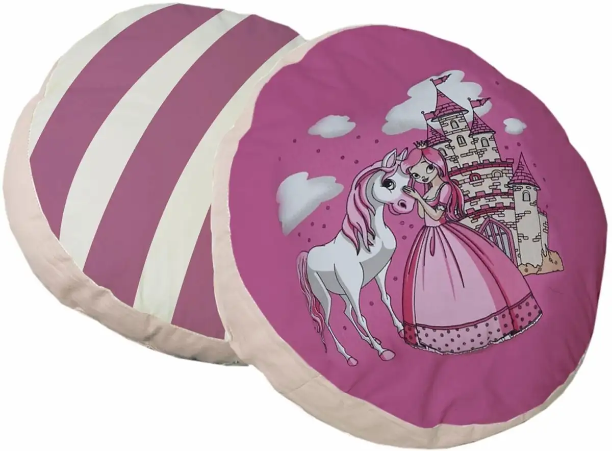 Набор круглых подушек из двух предметов с разными мотивами и цветами. Подушки двусторонние и имеют разные цвета или мотивы с каждой стороны. Идеальный дополнительный продукт. Чехол из 100% хлопка.