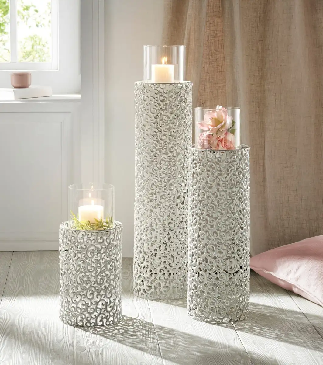 Напольный фонарь из металла с порошковым покрытием, окрашенный и состаренный. С вырезами и стеклянными цилиндрами. Без свечи.