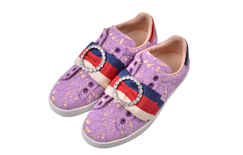 Кеды женские Gucci с кружевом, фиолетовый / розовый