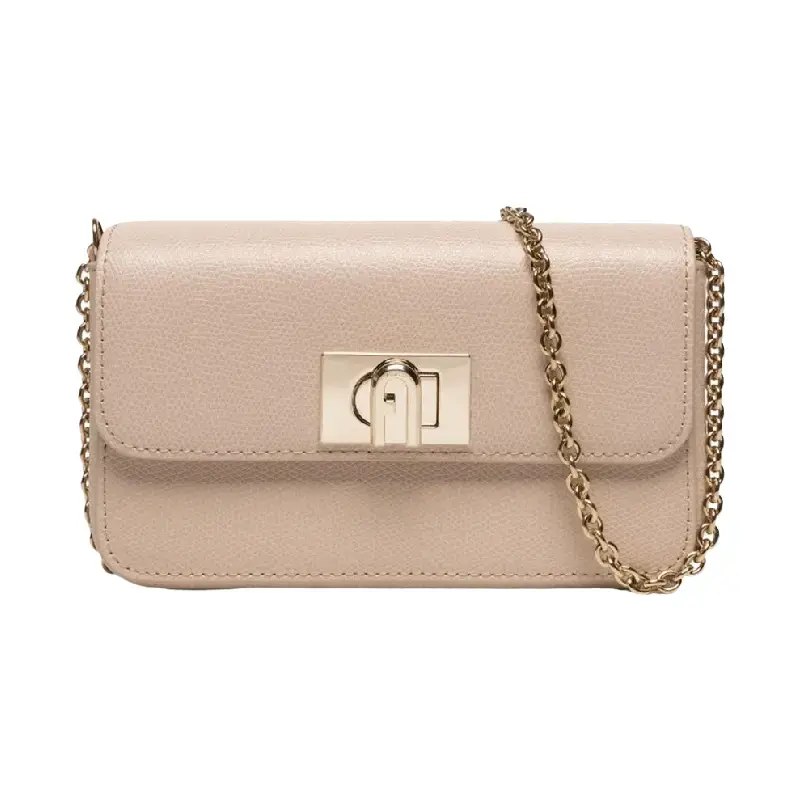 Маленькая сумка, выполненная из тисненой кожи. Благодаря ремню-цепочке аксессуар можно носить на плече или через плечо.