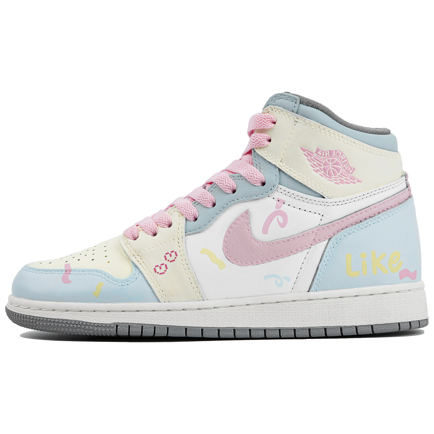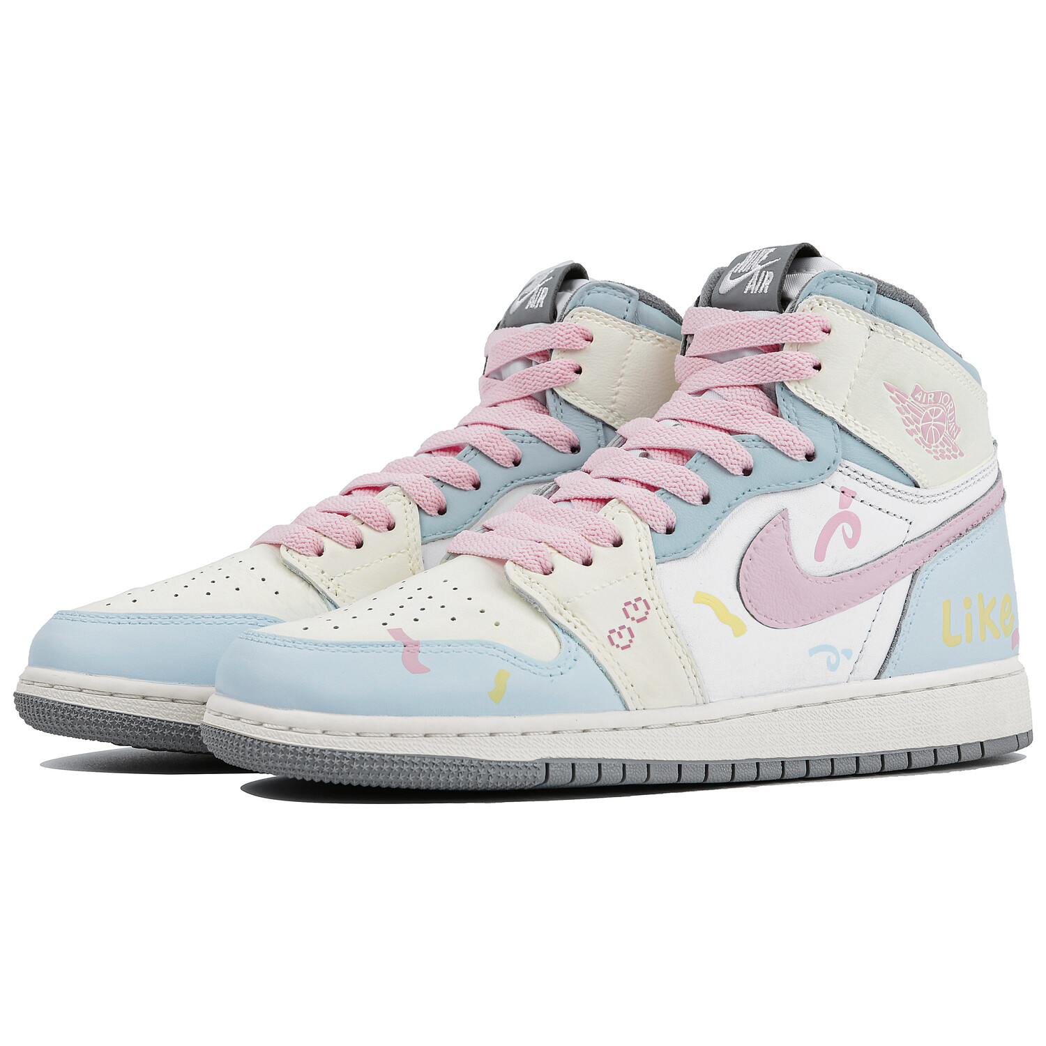 Кроссовки Air JORDAN 1 Skateboard Women's High-Top, розовый/голубой/белый