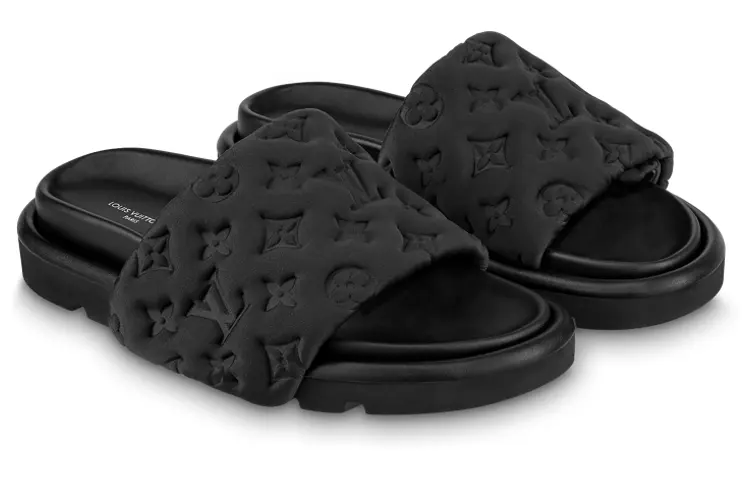 Шлепанцы женские Louis Vuitton с узором логотипа, черный