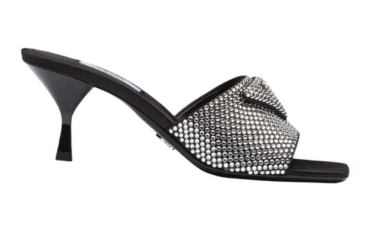 Шлепанцы женские Prada Crystal Heeled, черный