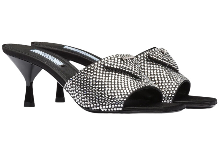 Шлепанцы женские Prada Crystal Heeled, черный 46 018₽