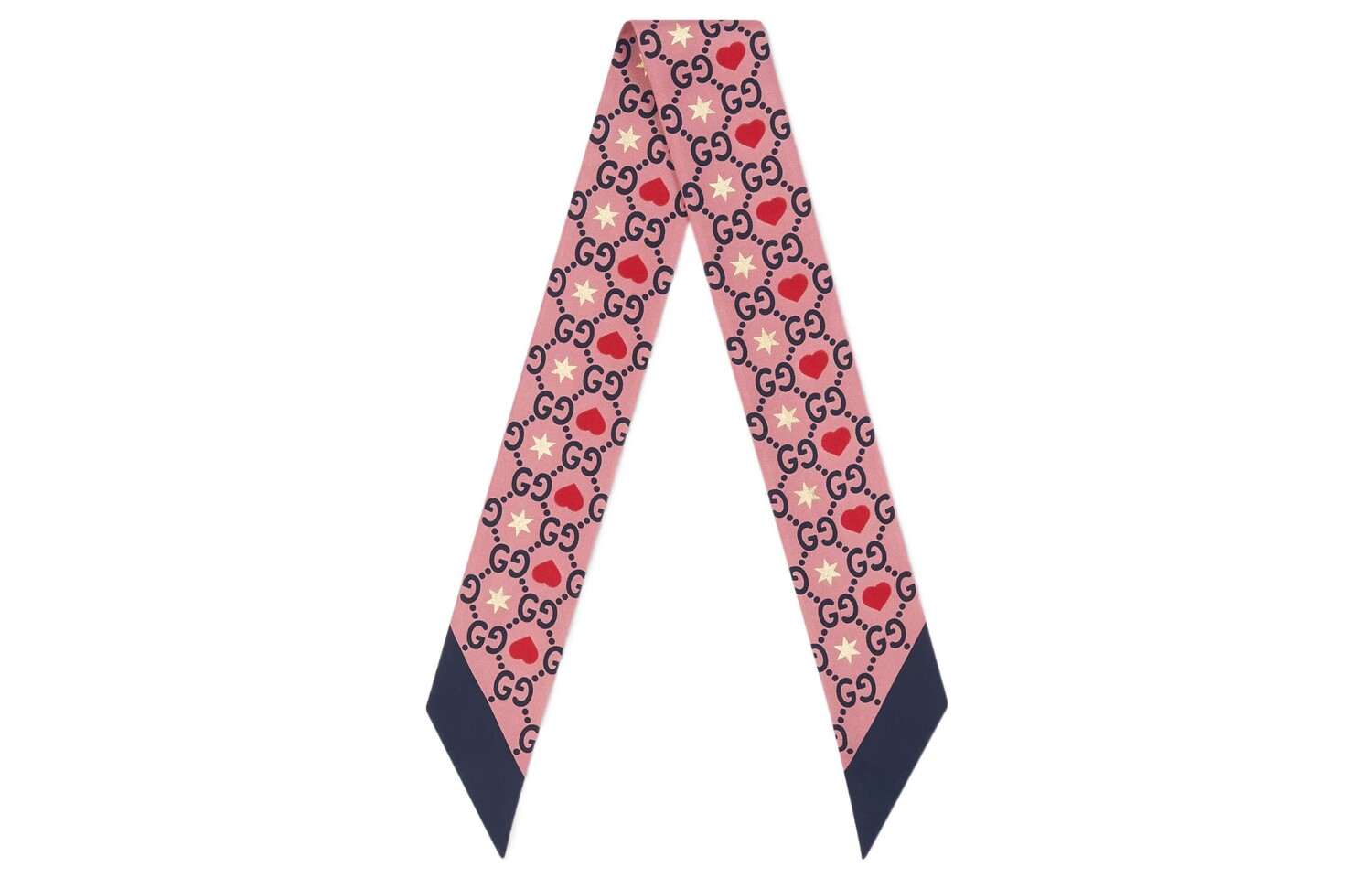 Шарф шелковый Gucci женский, розовый / черный 30 883₽