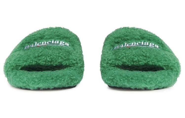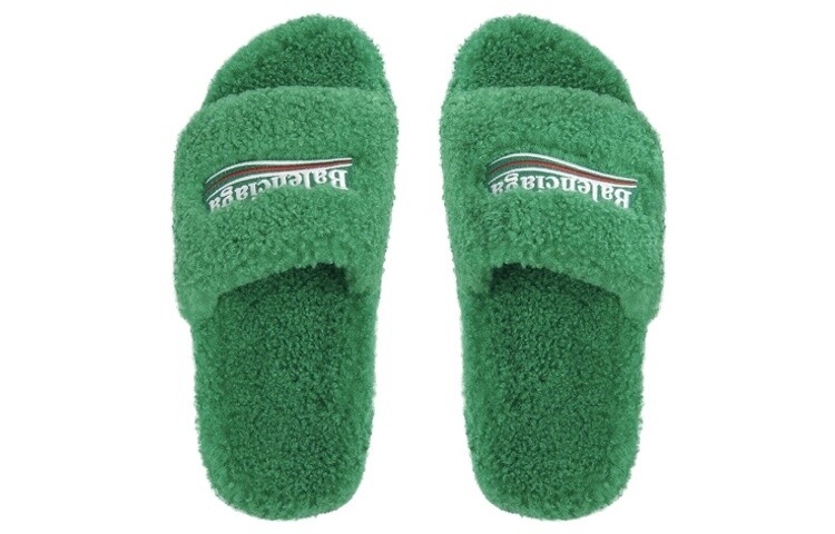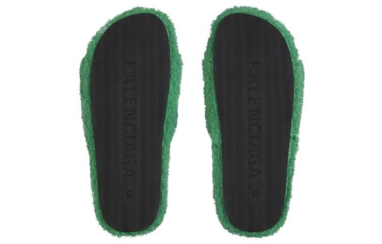 Шлепанцы мужские Balenciaga с мехом, зеленый